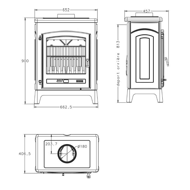 Sortie des fumée par le haut ou l’arrière Ø 180 mm